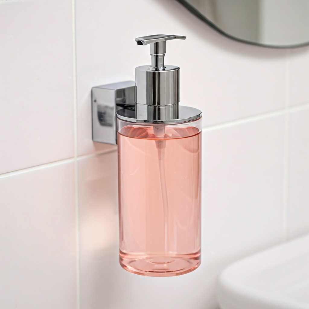 Distributeur mural à pompe, parfait pour savon liquide, gel hydroalcoolique ou shampooing.